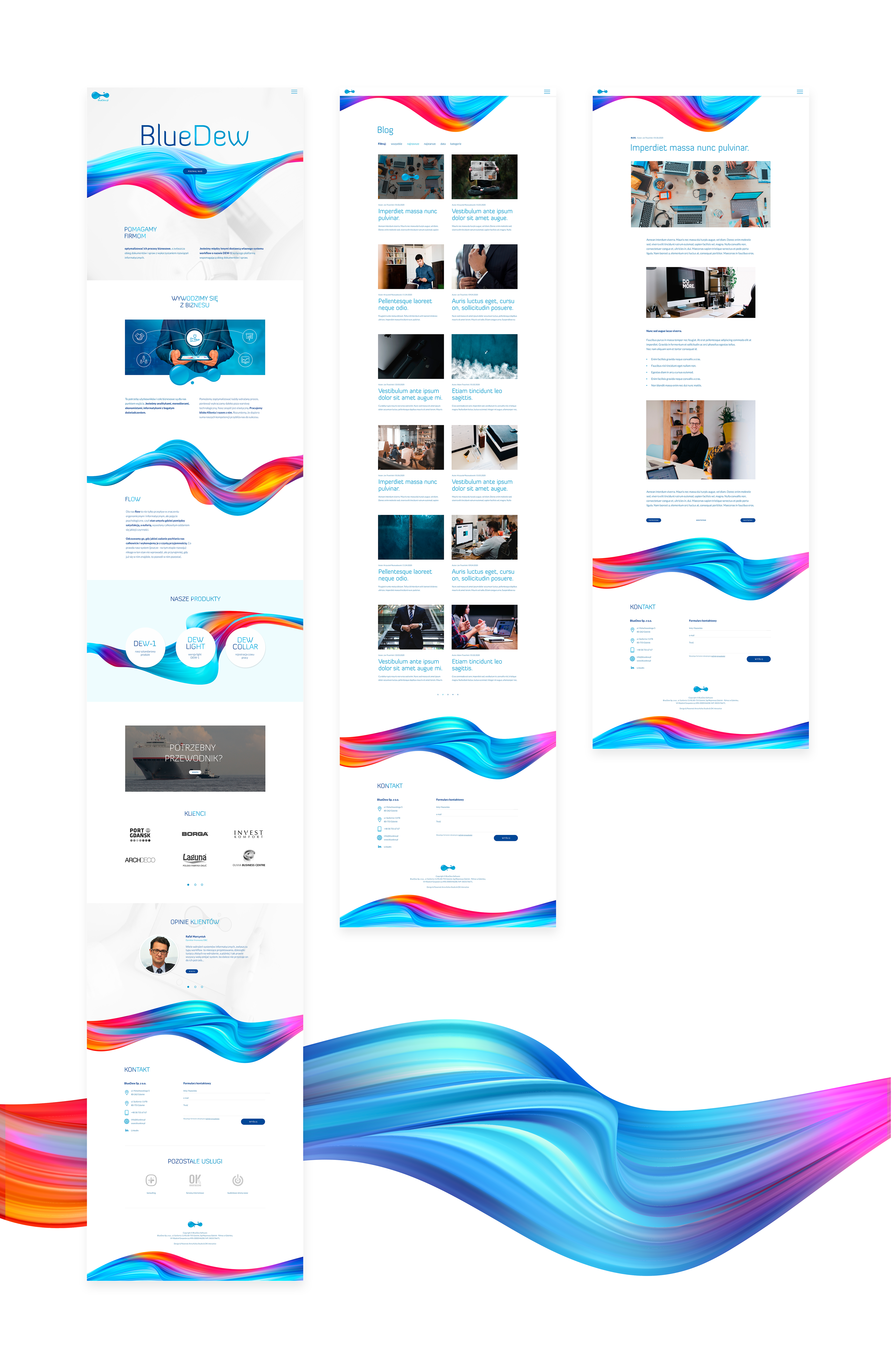 Projekt responsywnej strony internetowej i bloga (desktop, tablet, mobile) dla firmy zajmującej się oprogramowaniem w optymalizacji procesów biznesowych, a zwłaszcza obiegu dokumentów i spraw z wykorzystaniem rozwiązań informatycznych. Projekt przygotowany wraz ze wstępnym prototypem w Adobe XD.