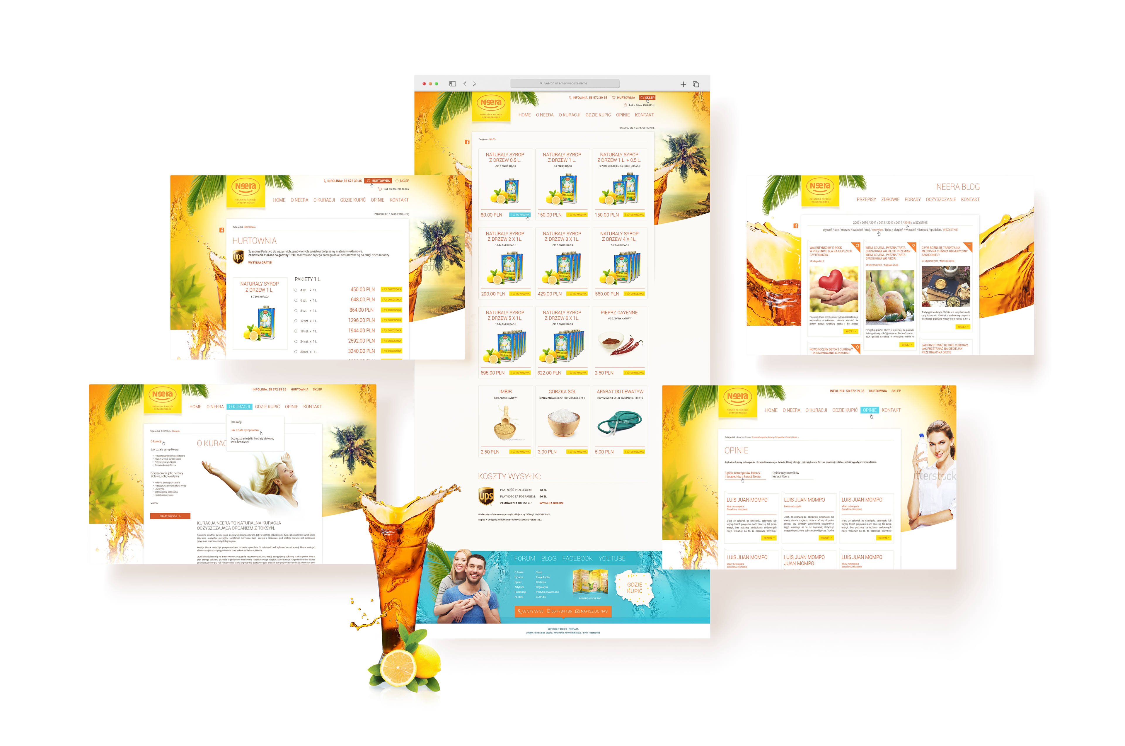 Projekt responsywnego sklepu online i bloga(desktop, tablet, mobile) oraz materiałów reklamowych dla firmy Madal Bal sprzedającej naturalny syrop z drzew Neera. Syrop został skomponowany w Szwajcarii z połączenia czystego kanadyjskiego klonu z syropami palmowymi południowo-wschodniej Azji i ma za zadanie wspierać dietę oczyszczającą.